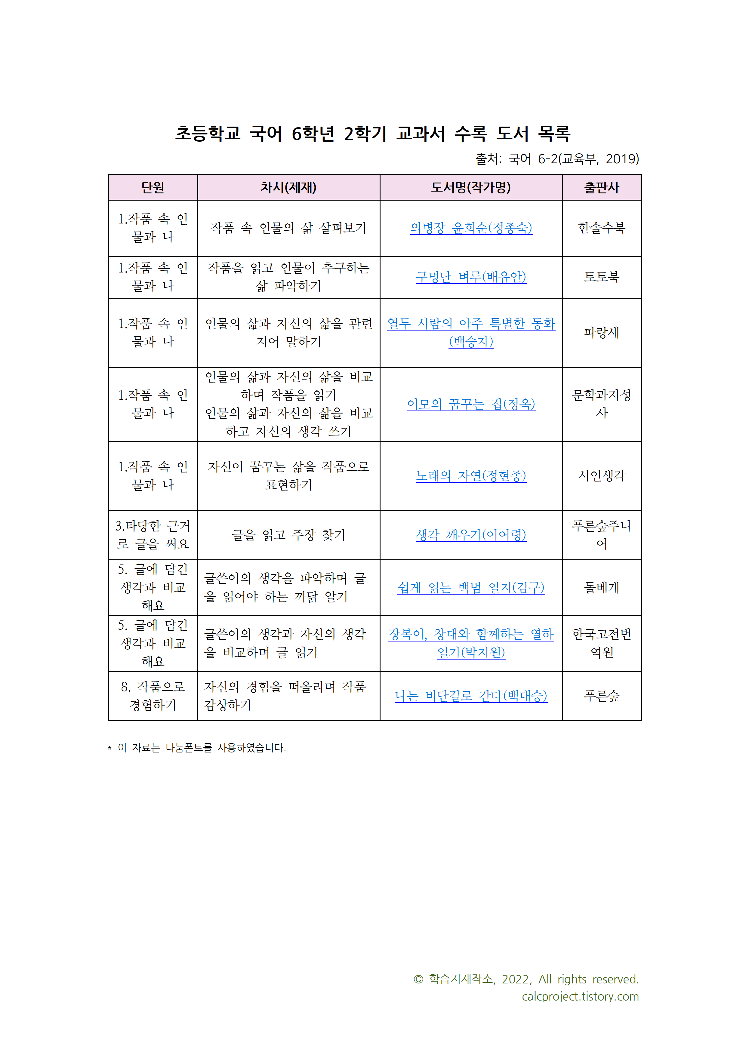 초등학교 6학년 2학기 국어 교과서에 수록된 작품 목록입니다.