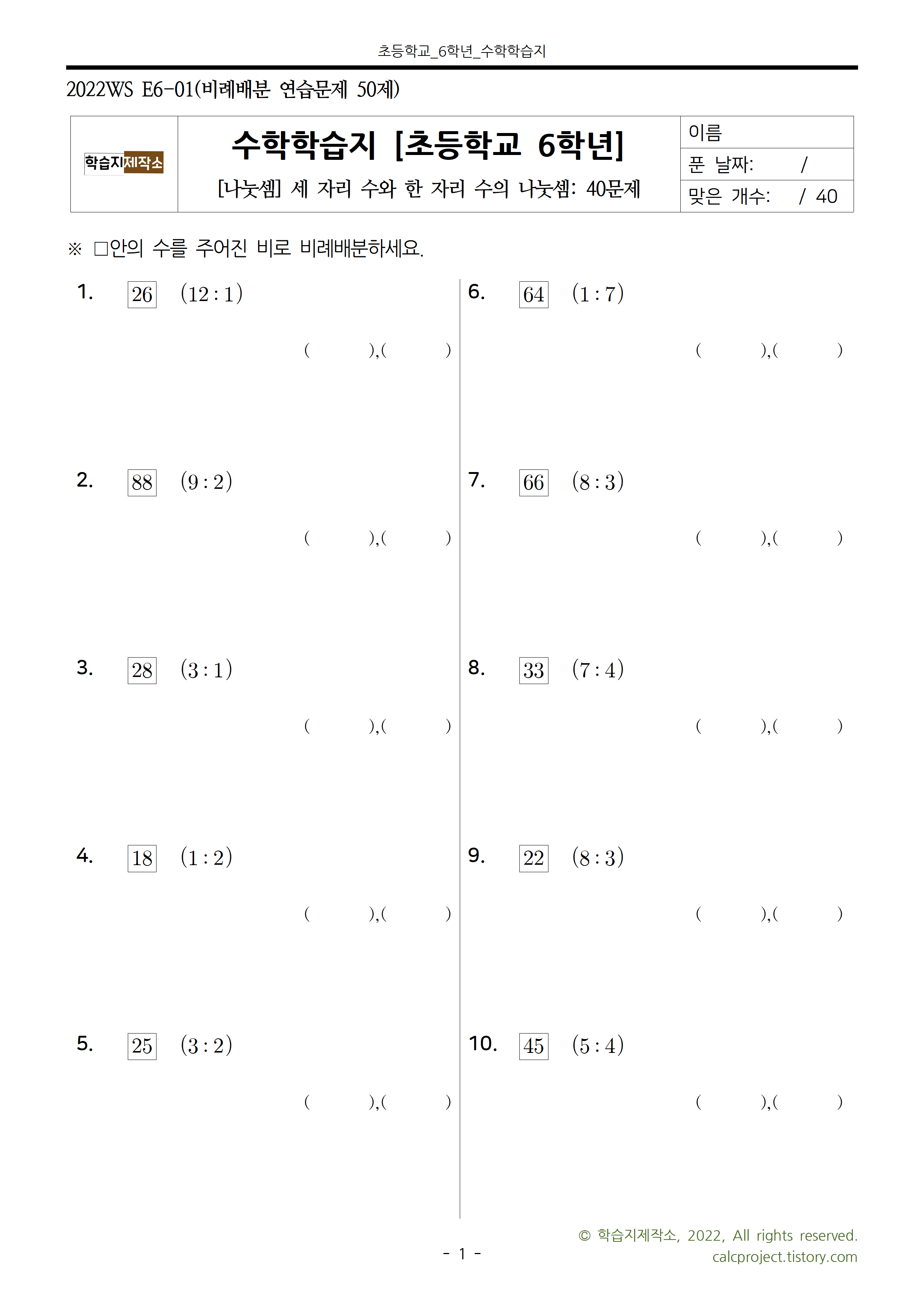 이번 보충학습지가 비례배분 연습에 도움이 되었으면 좋겠습니다.