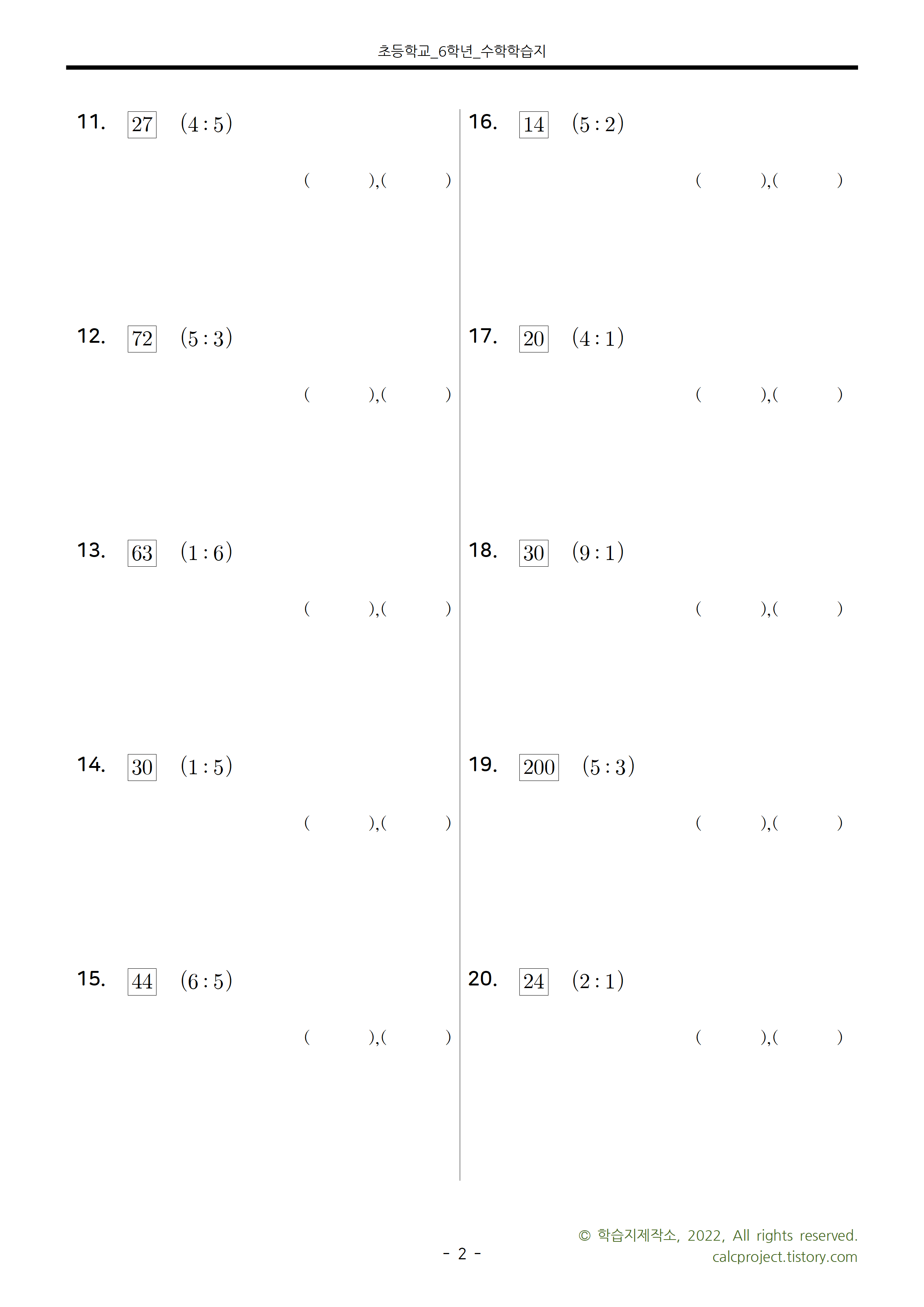 #태그 : 초6, 초등학교 6학년, 비례식과 비례배분 pdf, 비례배분 문제, 비례배분 하는 법, 비례배분 수학학습지