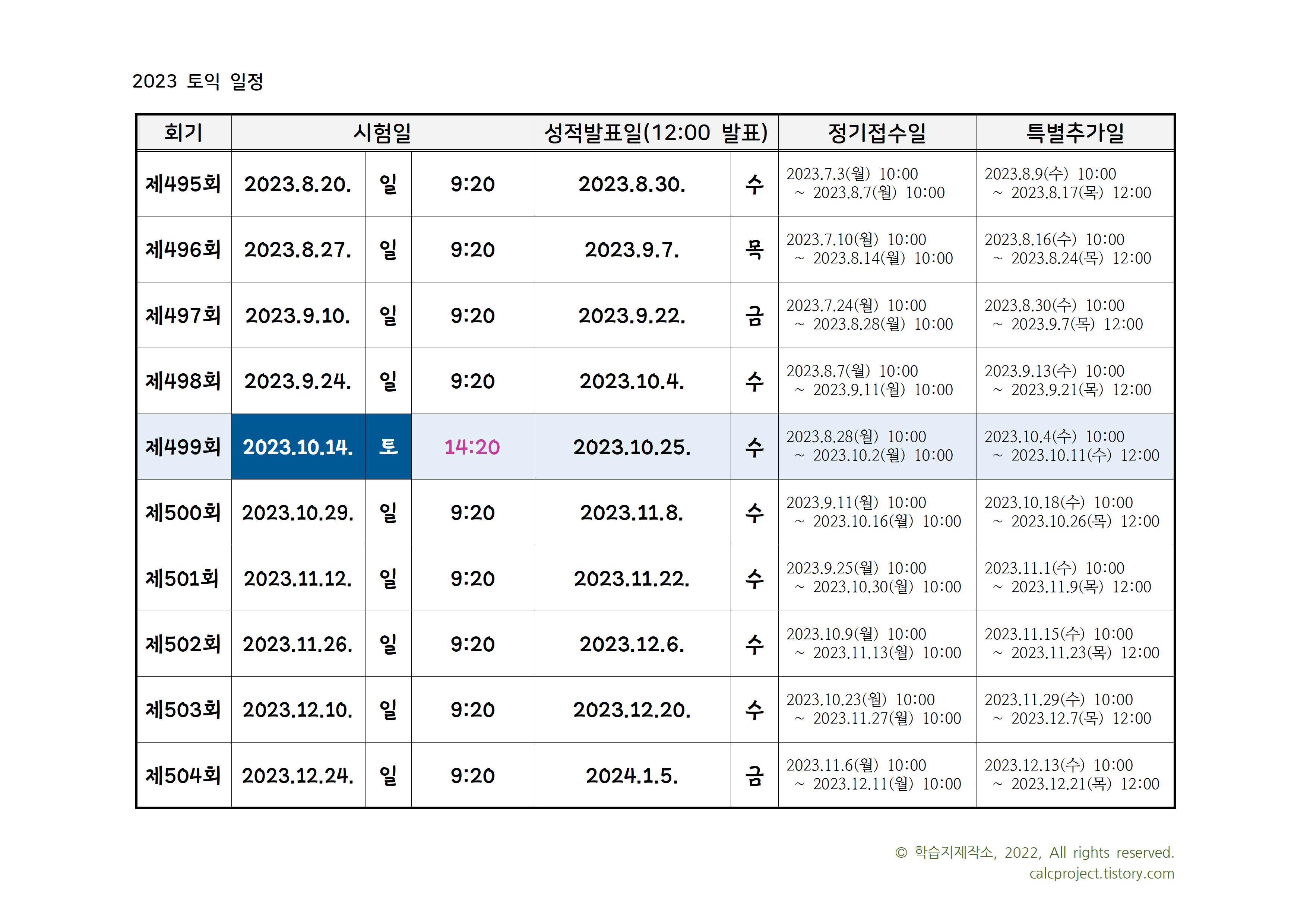 [참고] 토요일에 실시하는 시험은 제479회(1.14.), 제486회(4.15.), 제499회(10.14.) 총 3회입니다.