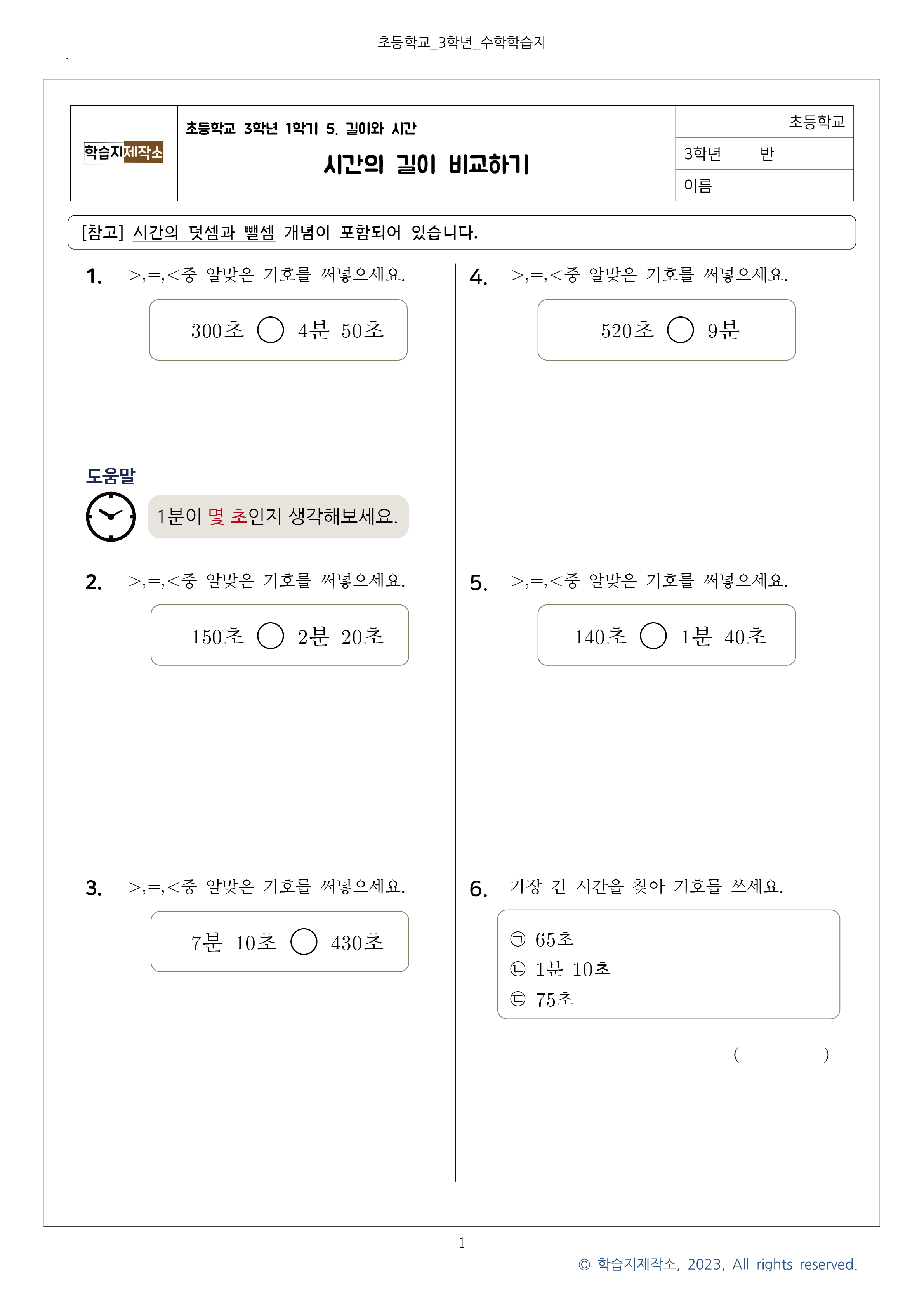 시간의 길고 짧음을 비교하는 내용을 중심으로 만들었습니다..