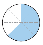 전체를 8로 똑같이 나눈 것 중에서 5만큼을 색칠했습니다. | $\cfrac {5}{8}$ |