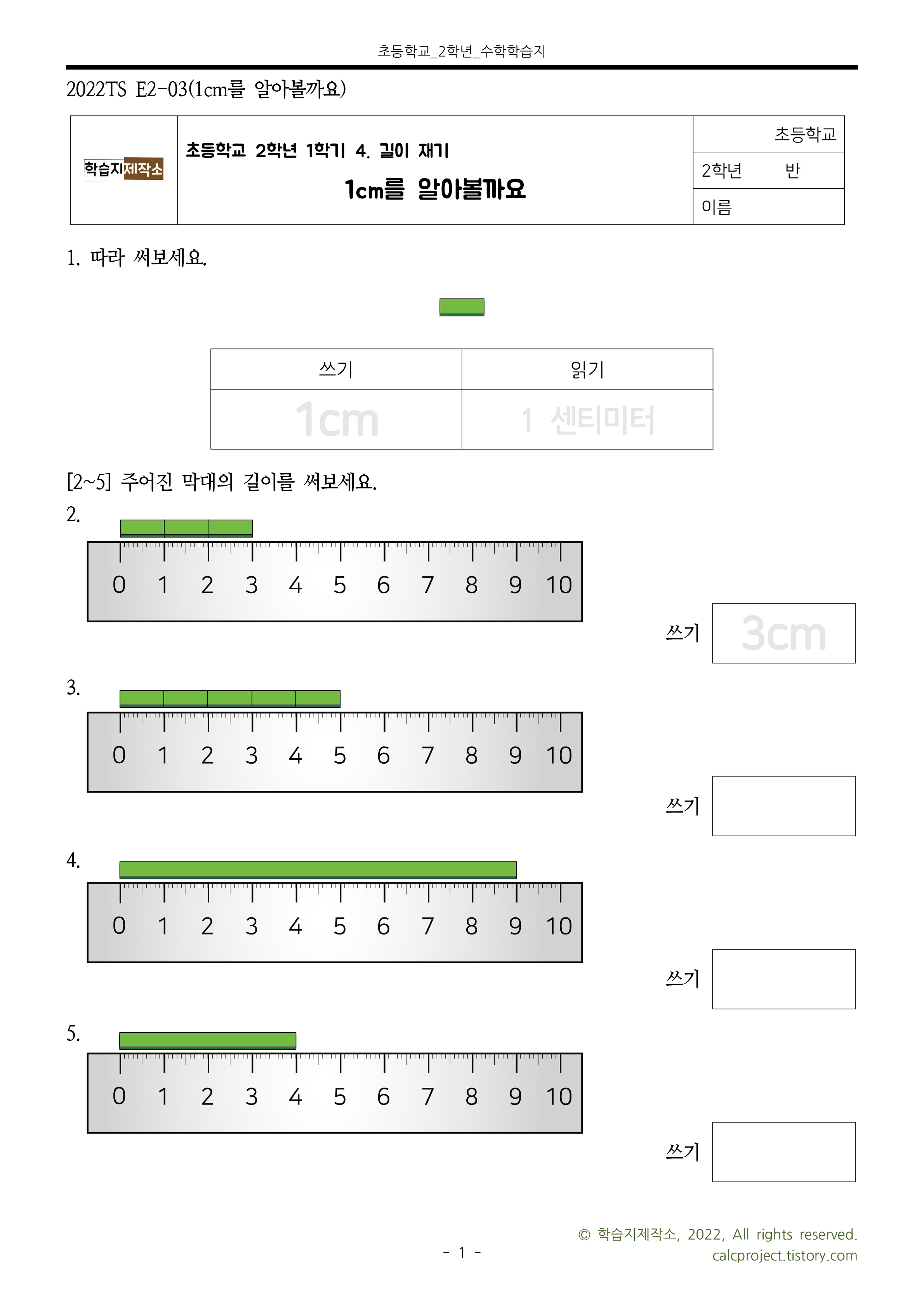 [풀이] 1cm가 다섯 번이므로 5cm라고 씁니다.