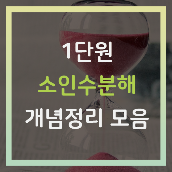 1단원 소인수분해 개념정리 학습지입니다. 모두 다섯 주제로, 해당 게시물의 개념 설명 내용을 pdf파일로 재정리한 자료입니다.