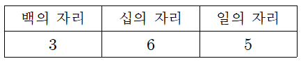 예) 세 자리 수 365의 각 자리 수는 다음과 같습니다.