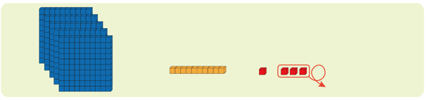 백의 자리끼리 더하면 2+1=3으로 백 모형 3개가 됩니다.