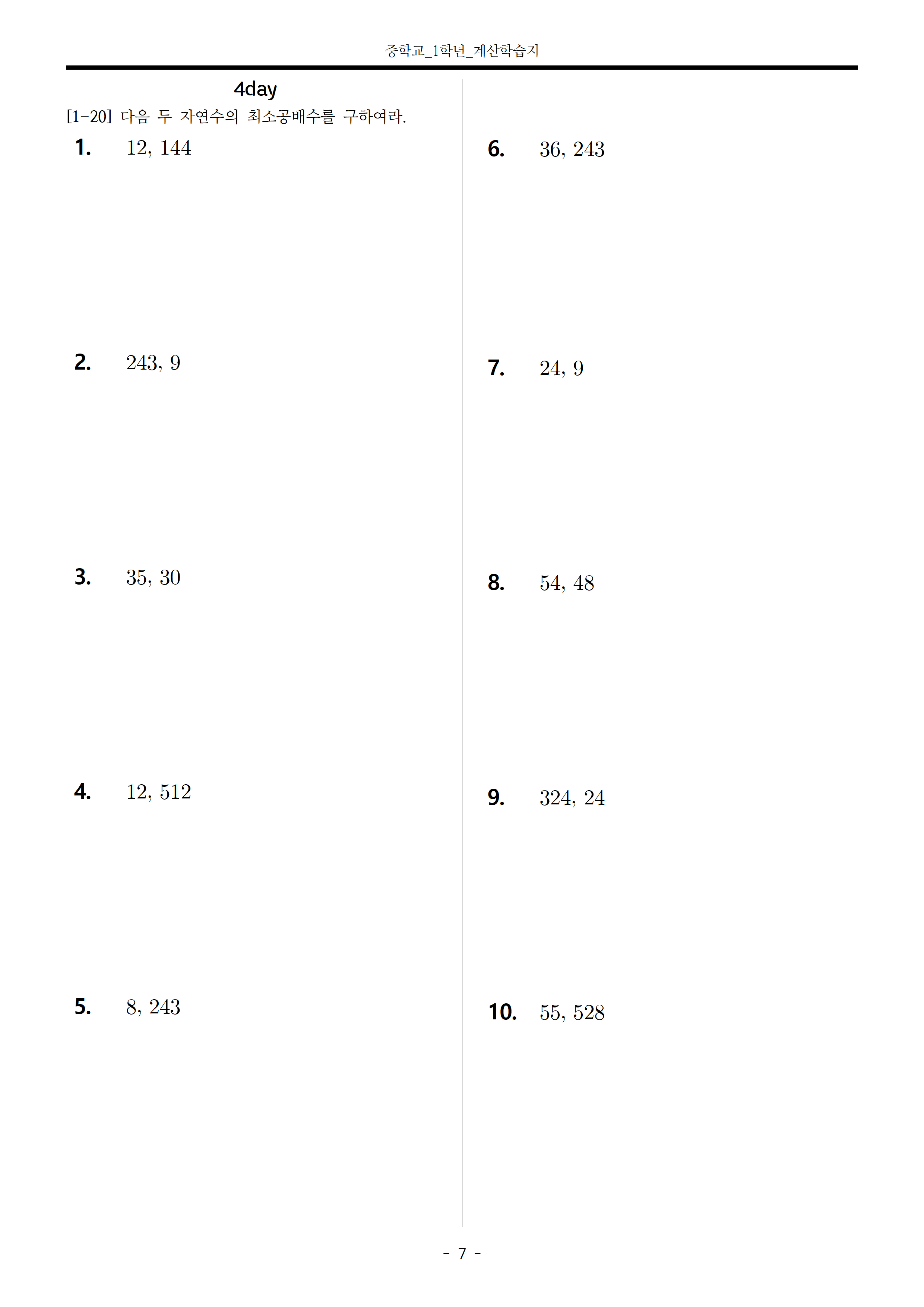 '수학 학습지 > 중학교 1학년 1학기' 카테고리의 다른 글