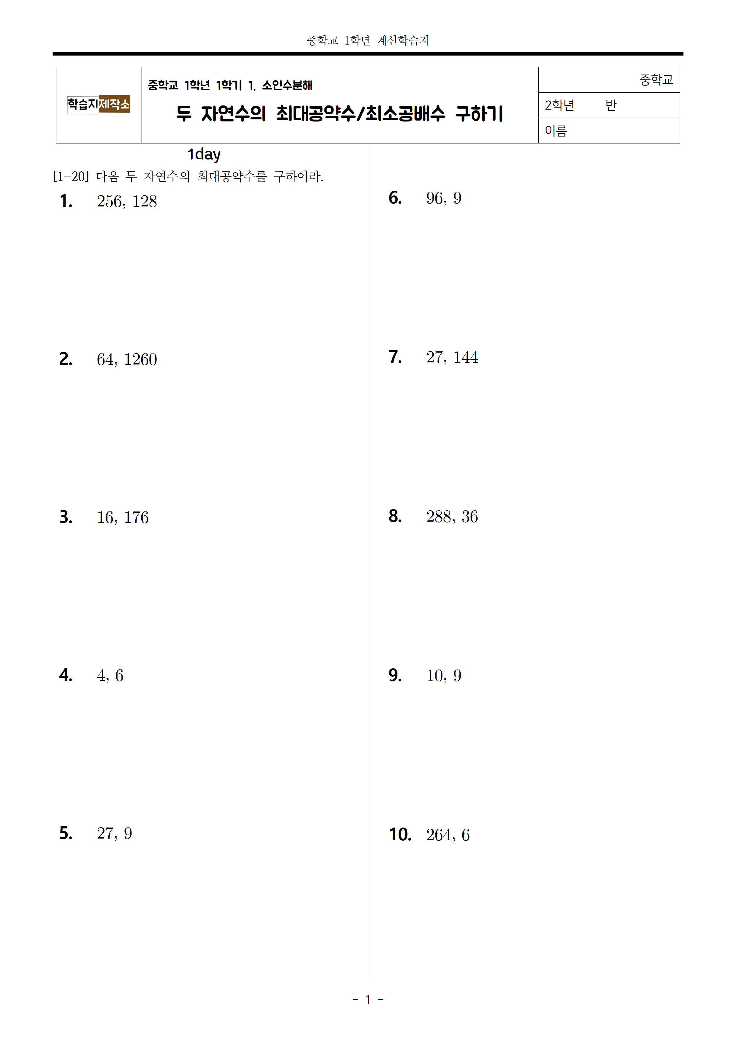 소인수분해 중 최대공약수와 최소공배수 구하기를 집중적으로 연습하실 수 있습니다.