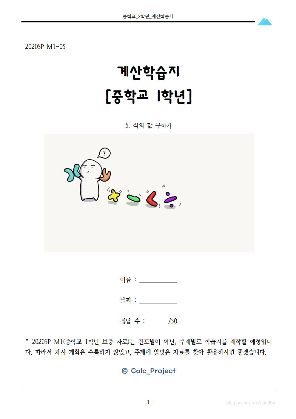 '수학 학습지 > 중학교 1학년 1학기' 카테고리의 다른 글