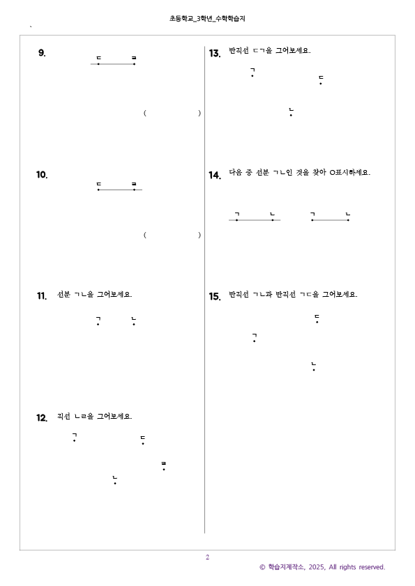 #태그 : 초3, 평면도형, 선분, 직선, 반직선, 학습지, 2022개정 교육과정