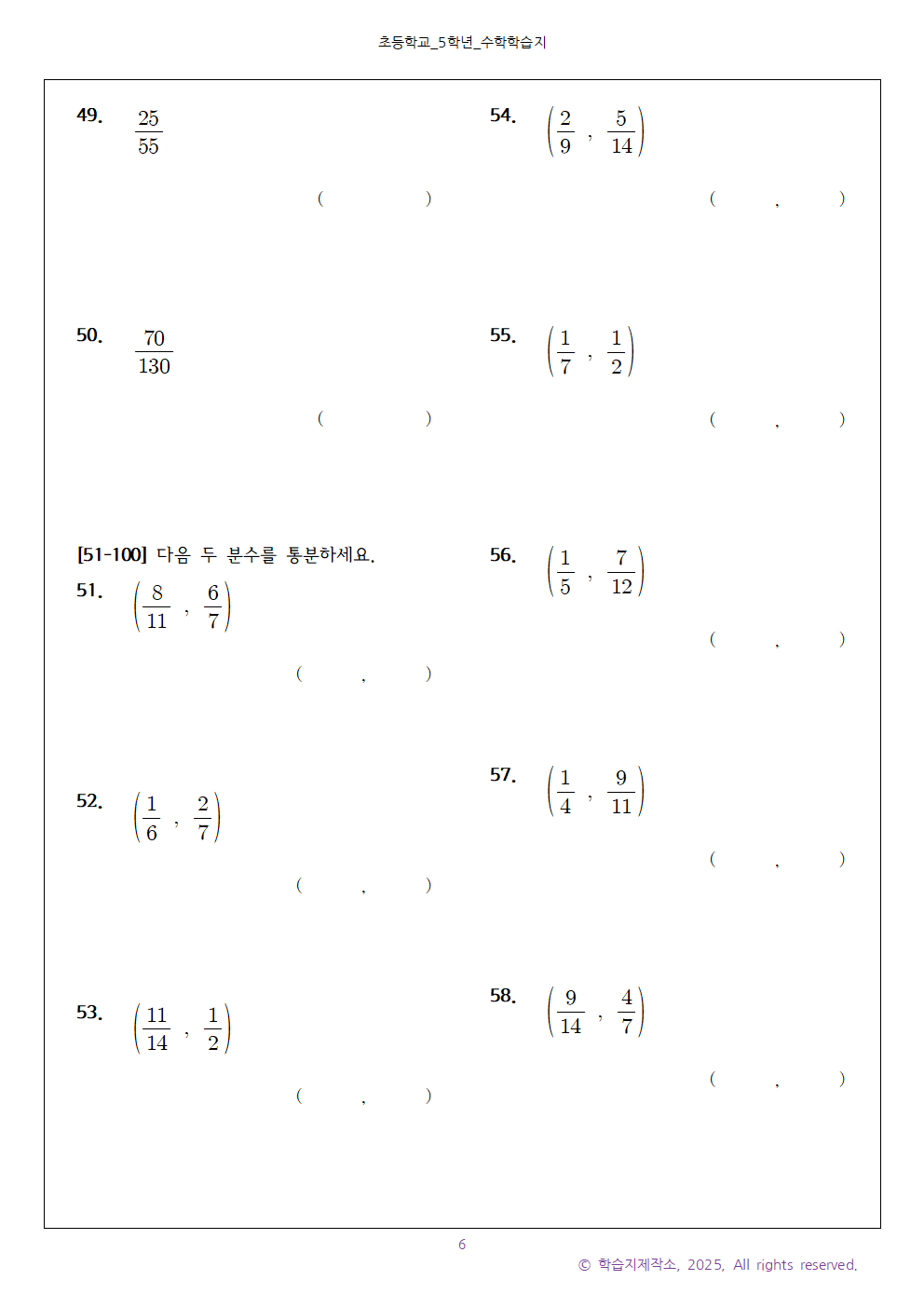 통분하기 50문제로 구성했습니다.