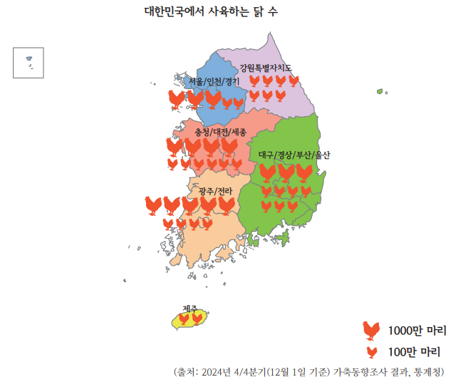 우리나라에서 키우는 닭이 권역별로 몇 마리인지 살펴봅시다.