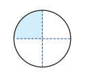 전체를 똑같이 4로 나눈 것 중 1 ➔ $\cfrac{1}{4}$이라 쓰고 4분의 1이라고 읽습니다. |