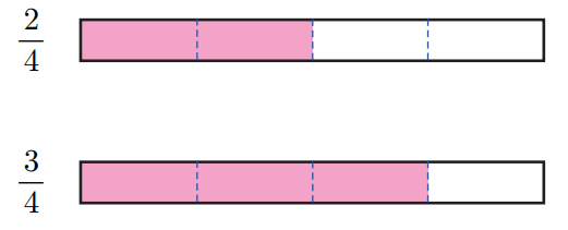 답: $\cfrac{2}{4} < \cfrac{3}{4}$