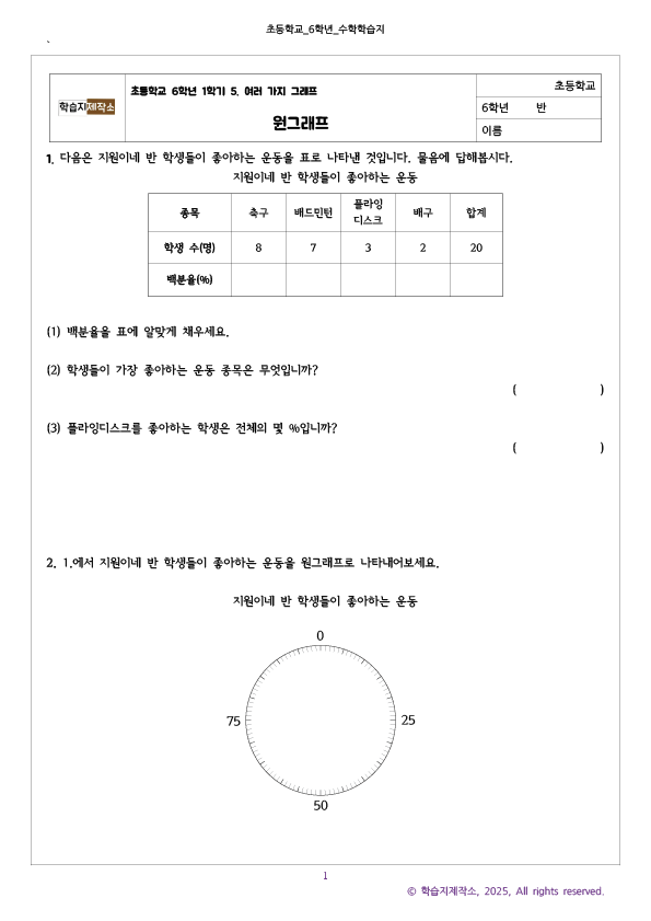 원그래프 학습지를 위와 같이 올립니다.