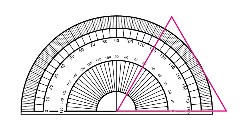 정삼각형의 각도를 측정하기 위해 각도기를 활용해봅시다.