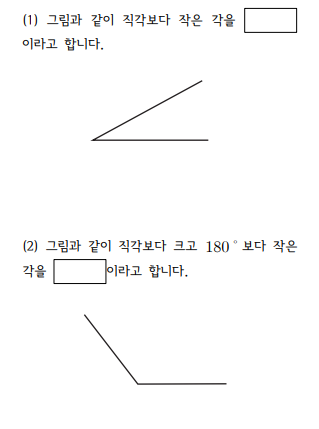 (1) 직각보다 작은 각을 '예각'이라고 합니다.