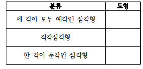 각의 크기에 따라 분류하기(예각삼각형, 직각삼각형) 차시 학습지를 만들어 올립니다.