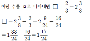 이 방법을 이용해 분수의 덧셈과 뺄셈이 들어간 어떤 수 문제 유형을 공부해봅시다.