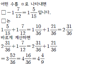 문제 어떤 수에 $1\cfrac{7}{12}$를 더할 것을 잘못하여 빼었더니 $1\cfrac{5}{18}$가 되었습니다. 바르게 계산한 값은 얼마입니까?