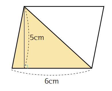 $6cm × 5cm ÷ 2 = 15cm^2$