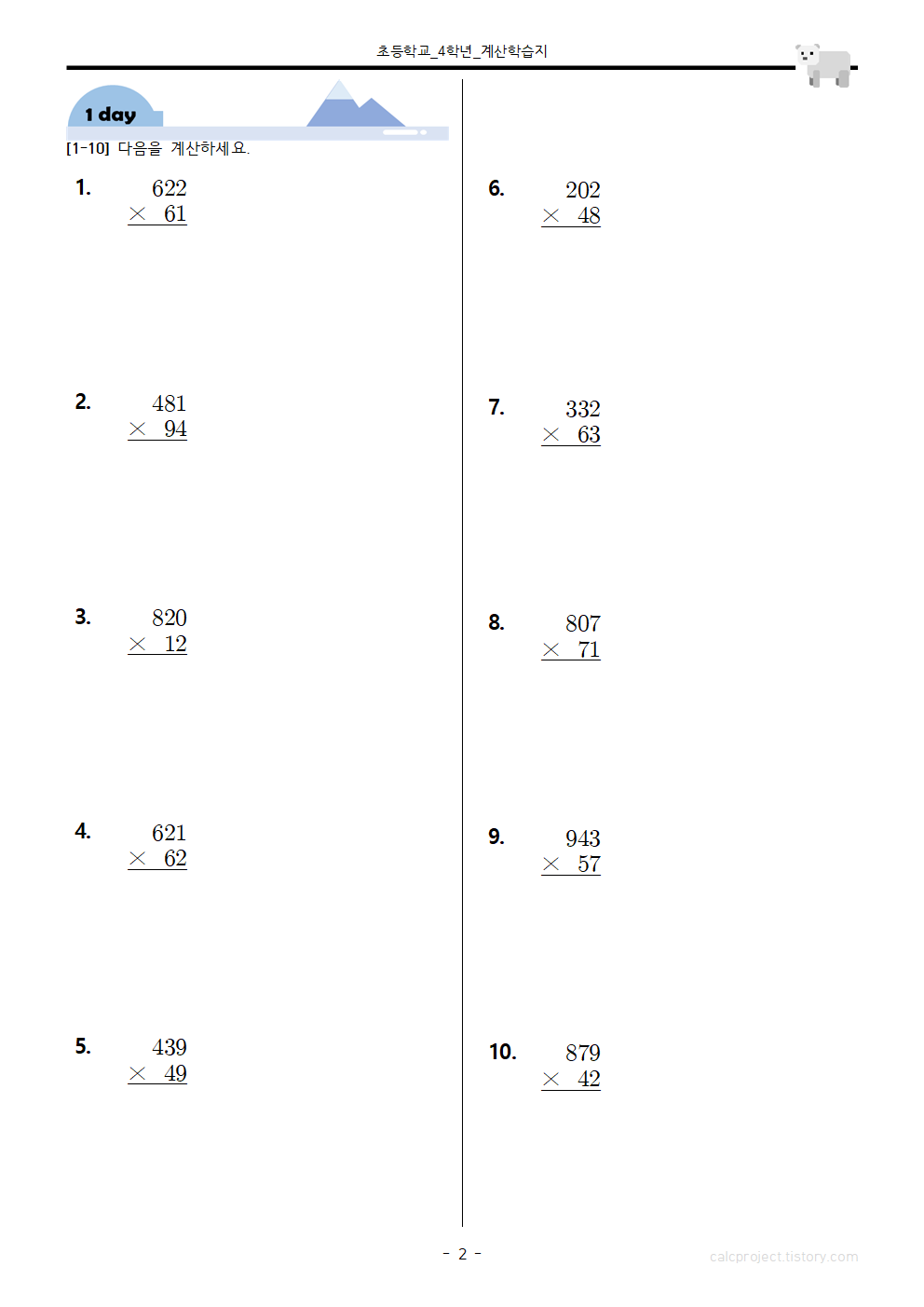 #태그 : 초등학교 4학년 수학, 초4 수학, 곱셈과 나눗셈, 곱셈과 나눗셈 문제, 초4 곱셈 문제, 초등학교 4학년 곱셈 문제, 세 자리 수, 두 자리 수, 세 자리 수와 두 자리 수의 곱셈, 초4 곱셈 문제 다운, 곱셈 학습지, 다운, 다운로드, 무료, PDF, 학습지제작소