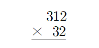 그 다음 312와 3(0)을 곱한 값을 자릿값에 맞추어 계산합니다. 이때, 3은 십의 자리에 위치하므로, 사실상 312와 30을 곱한다고 생각하고 자릿수를 맞추어줍니다.