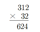 세로셈으로 적은 후, 312와 2를 곱한 값을 자릿값에 맞추어 계산합니다.