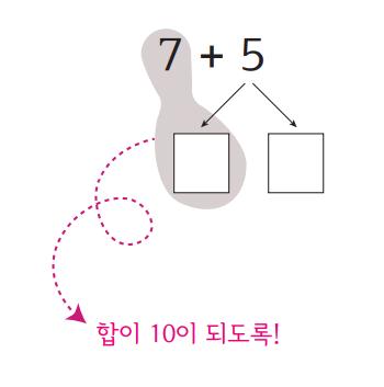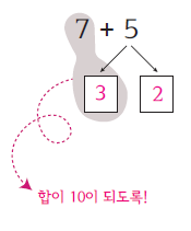 위와 같이 7+5가 있습니다. 7과 더하여 10이 되기 위해서는 3이 필요합니다.
