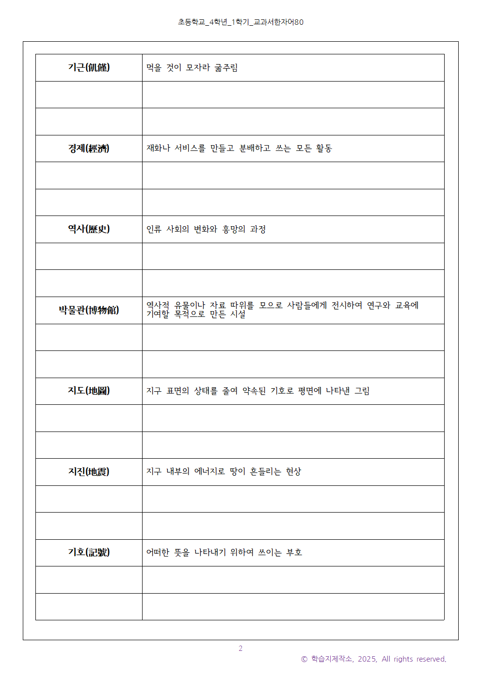 | [초4-1] 국어 사회 과학 도덕 공부를 위한 교과서 한자어 - Day 3 (4) | 2025.08.07 |