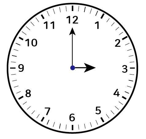 ※ 3시일 때 시침과 숫자 12가 이루는 각은 90도입니다.