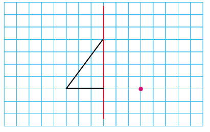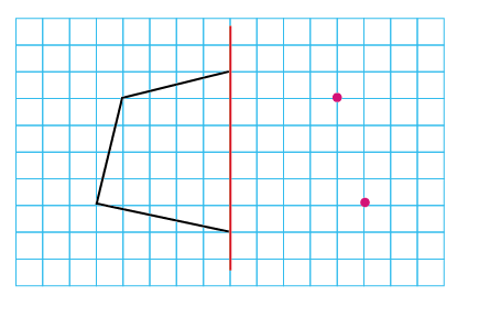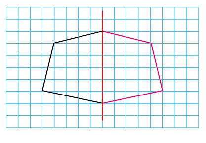 붉은 선을 대칭축으로 하는 선대칭도형을 그려봅시다.