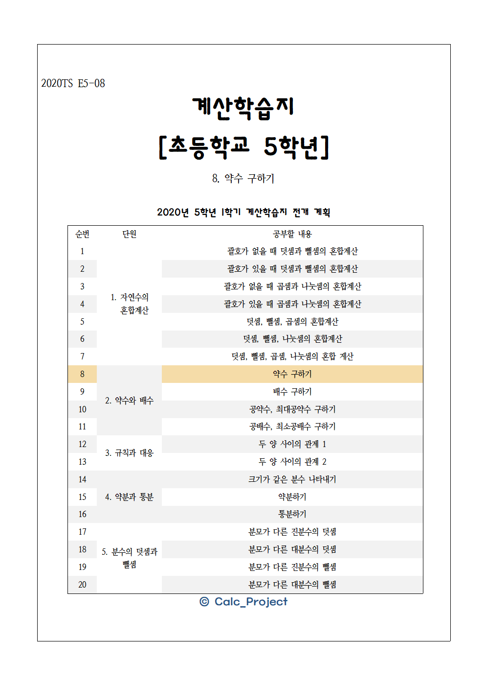 | [초5-1] 10. 약수와 배수 > 공약수와 최대공약수 구하기 (개념+연산문제) (0) | 2020.03.26 |