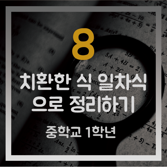#태그 : 치환, 중학교 수학, 중학교 1학년 문자와 식, 식의 계산, 치환한 식 정리하기, 일차식 정리하기, X,Y,A,B, 동류항, 일차식 정리하는 방법, 일차식 치환하기