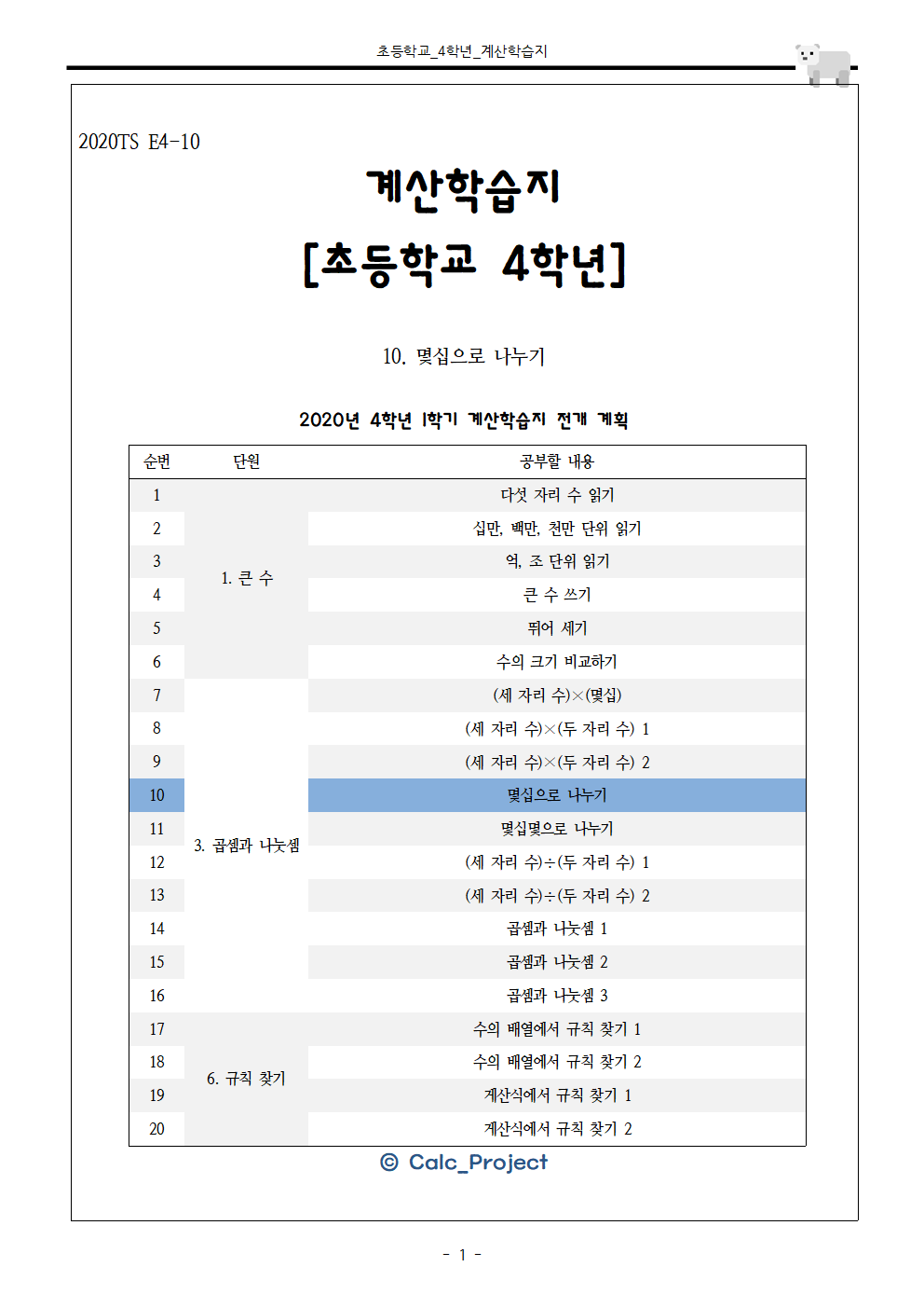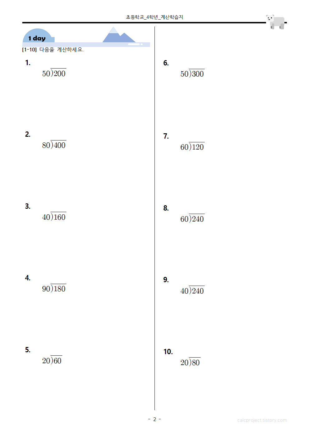 #태그 : 나눗셈, 초4 나눗셈, 두 자리 수 나눗셈, 몇십 나눗셈, 초등학교 4학년 나눗셈 학습지, 나눗셈 문제, 초4 몇십 나누기 문제, 곱셈과 나눗셈 연습문제, 초4 학습지 무료, 초4 수학 연산, 수학 연산 무료