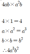 학습지 1day의 9번을 풀어봅시다. 이 식은 단항식 4ab와 a^2 b가 곱해진 꼴입니다.