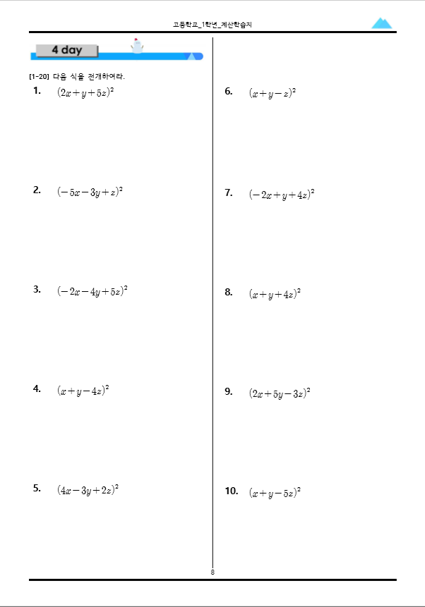 고등수학 1학기에는 처음으로 다항식의 전개를 배웁니다. 다항식의 전개 중,