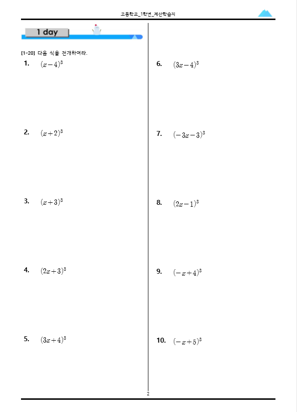 [2020SP H1] 고등수학(상) 연산 보충 자료입니다.