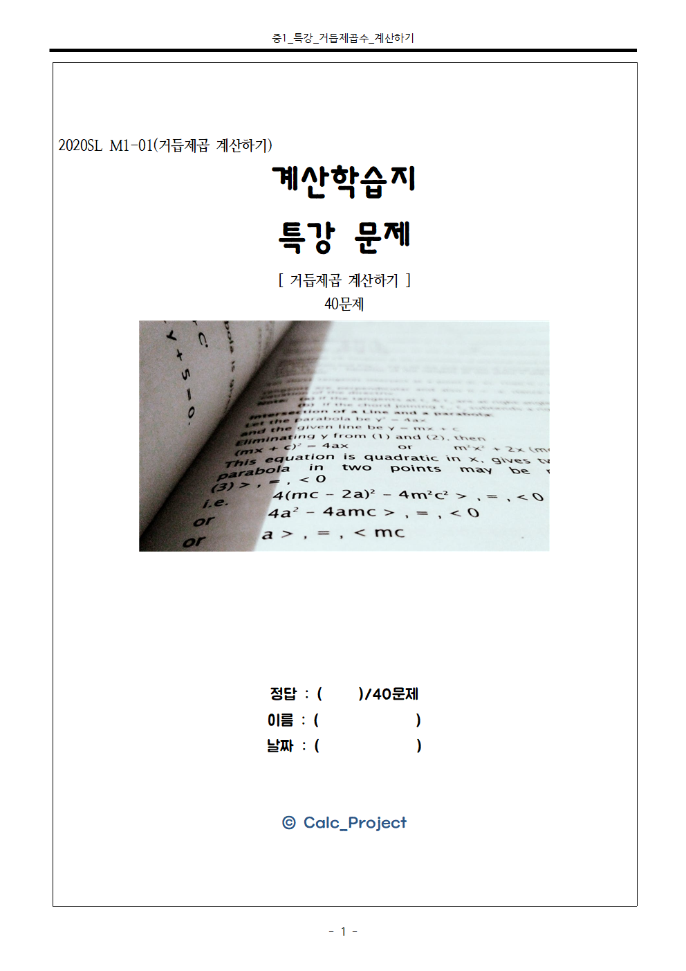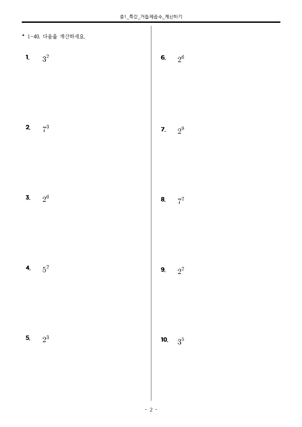 총 40문제로, 거듭제곱표와 같이 첨부하니, 참고하시면서 연습하시면