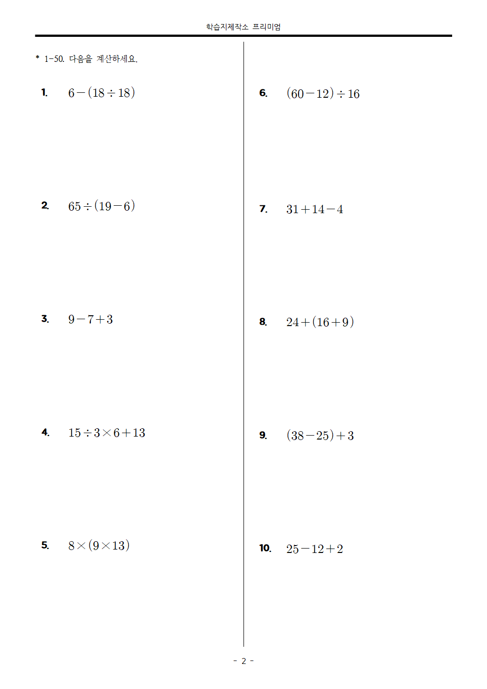 1번부터 50번까지는 자연수의 혼합계산 종합 연습 (1)