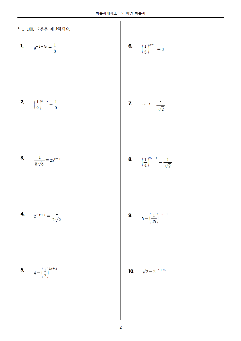 #태그 : 수학1, 지수방정식 학습지, 고2 내신, 수학1 지수함수와 로그함수 수학자료