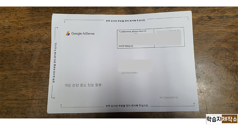 뒤집으면 집의 주소와 함께 개인 정보 동봉이라는 글귀를 볼 수 있습니다.