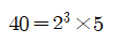 40 = 2 × 20 = 2 × 2 × 2 × 5