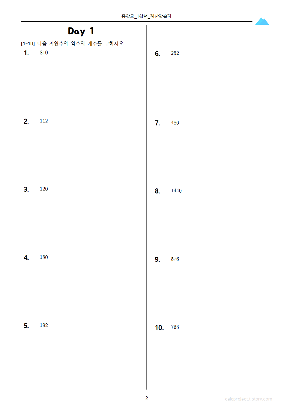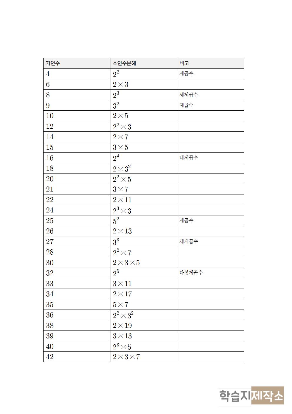 학습지 첨부파일과 소인수분해 표는 아래에 있습니다.
