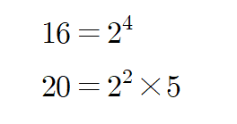 정리하자면 16과 20은 2로 두 번 나눈다면 서로소가 됩니다.