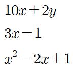반면, 식 중에 항이 여러 개로 이루어진 식들이 존재합니다.