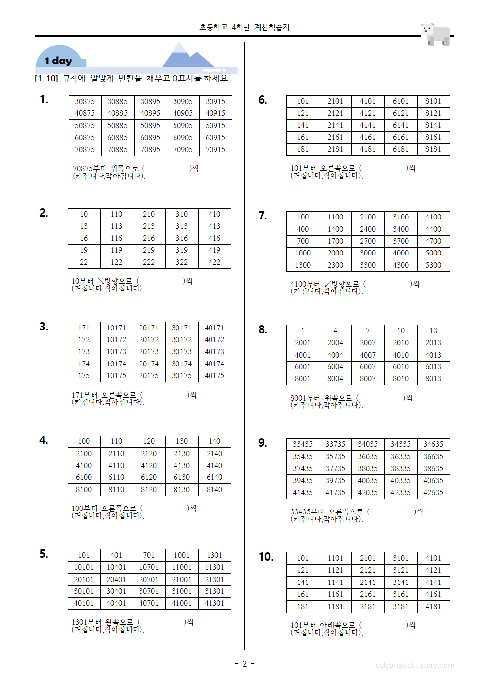 #태그 : 초4, 초등학교 4학년, 규칙 찾기, 수 배열표, 수 규칙 찾기, 규칙 문제, 규칙 학습지, 규칙 찾기 문제 다운, 초등학교 4학년 학습지, 학습지제작소