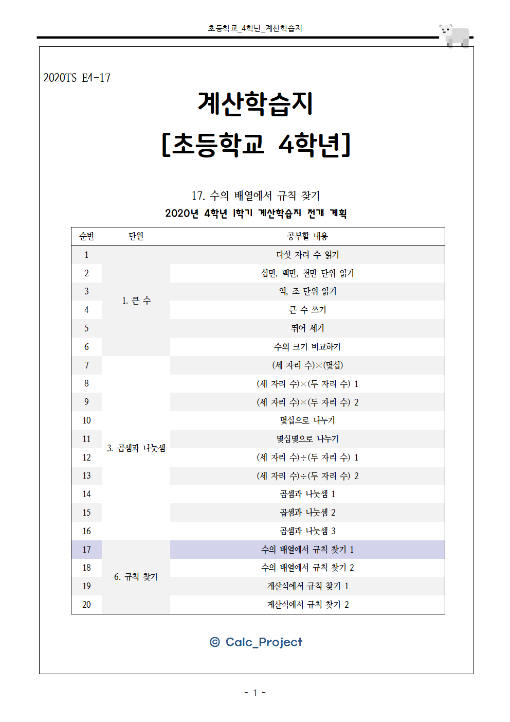 이번 포스팅은 초등학교 4학년으로,