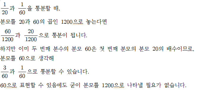 다음은 분모의 곱으로 통분했을 때 불편함을 겪는 사례입니다.