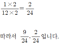 의 분모를 24로 만드려면 분자와 분모에 2를 곱하면 됩니다.